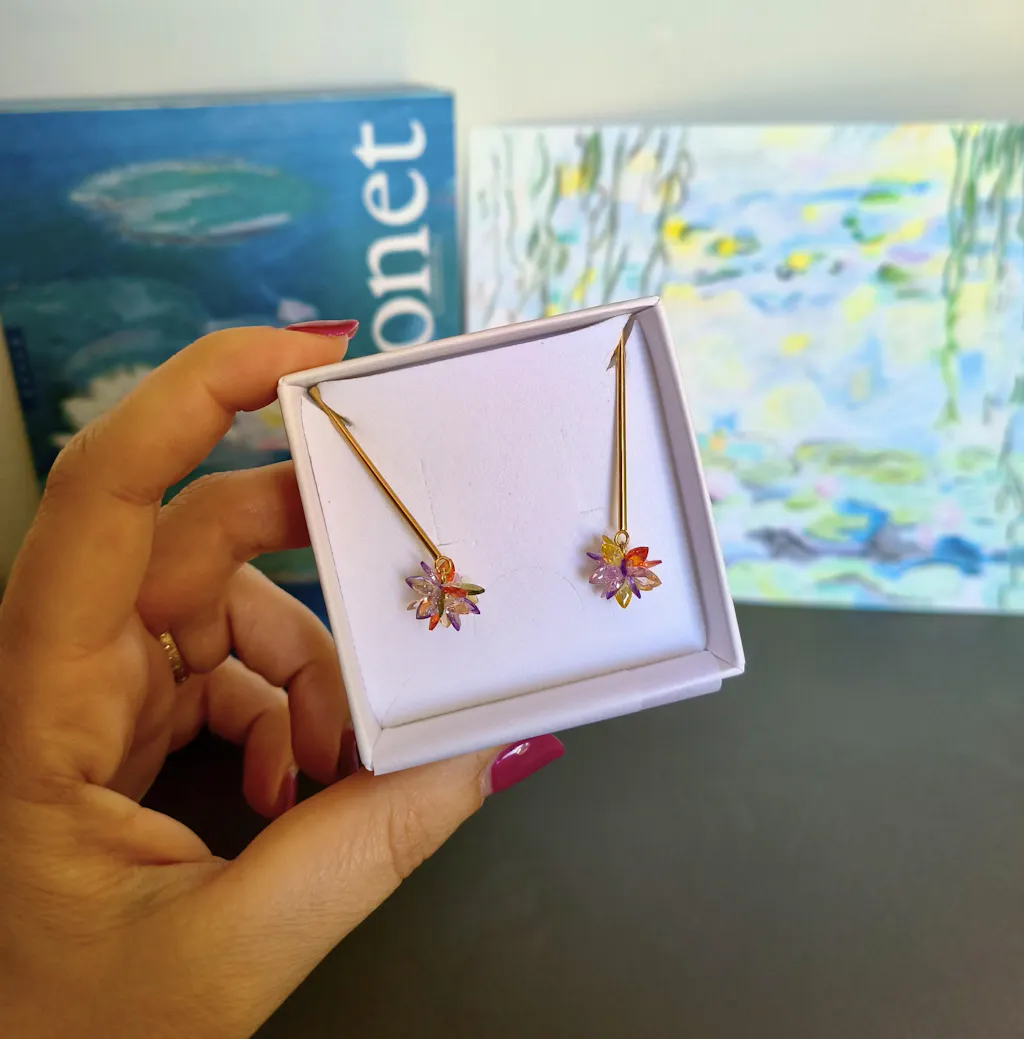 Amo le ninfee, non potevo non avere questi orecchini. Dal vivo sono ancora più belli, i giochi di luce e colore che creano sono meravigliosi, risplendono. La parte pendente rigida poi li dà un'eleganza incredibile. Sono stupendi, continua così Vanessa. Sappi che mi accompagneranno quest'estate a Giverny. 🩷