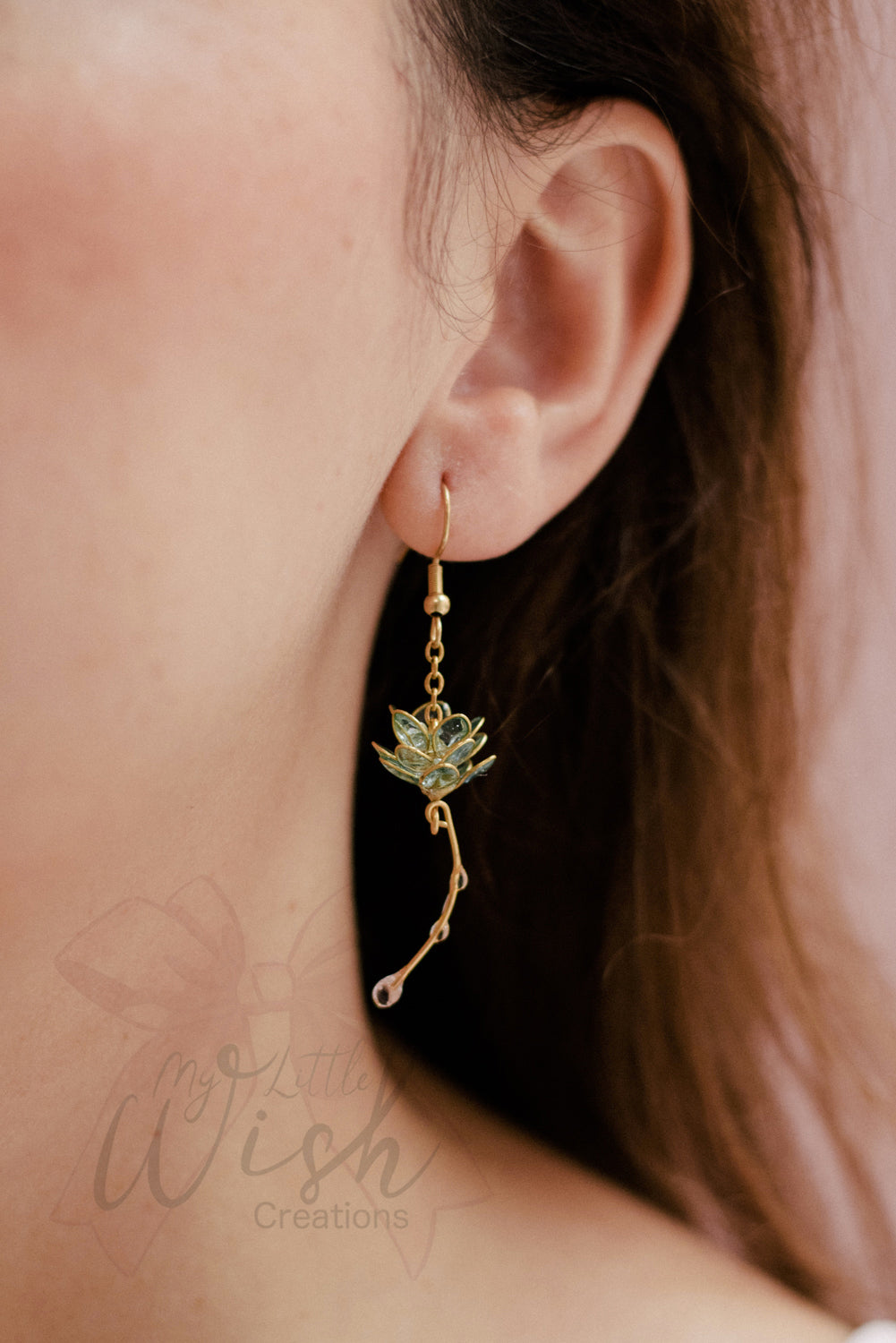 Il fiore di loto, simbolo di purezza, rinascita e armonia, diventa il protagonista di un accessorio che unisce grazia e significato profondo. Leggeri e raffinati, questi orecchini sono perfetti per aggiungere un tocco di magia fairycore ai tuoi outfit quotidiani o a un’occasione speciale.