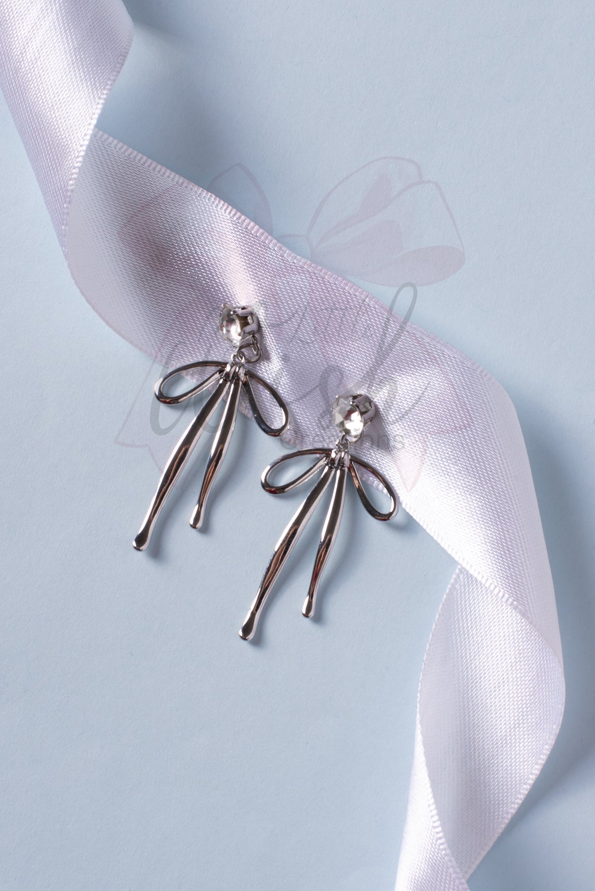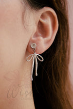 Orecchini pendenti con base in acciaio inossidabile con zircone e ciondolo a forma di fiocco in ottone placcato.