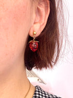 Orecchini in acciaio inossidabile 316 L placcato oro con fragole realizzate a mano in resina.