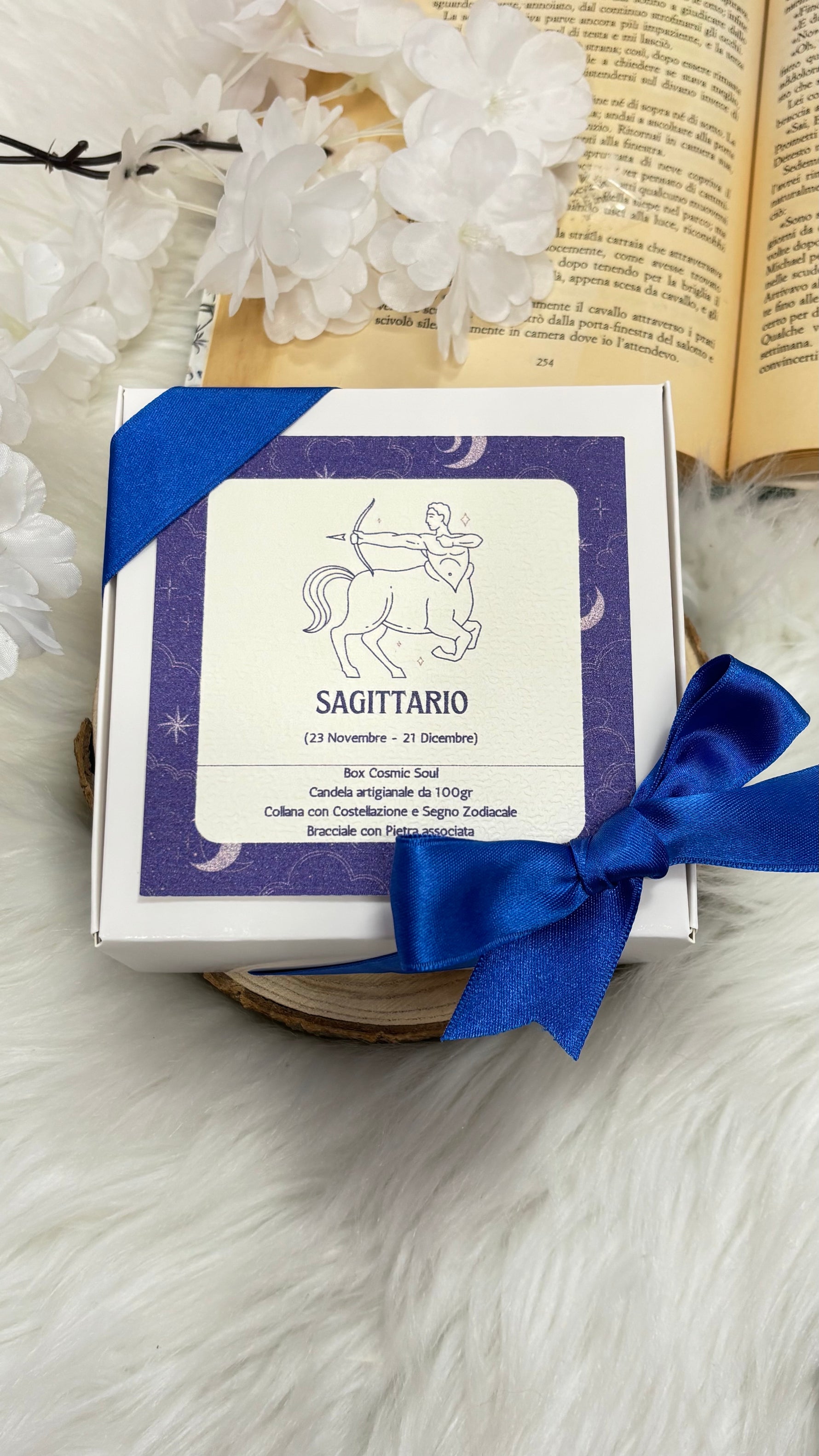 • Candela in cera di soia da 100 g con la fragranza dedicata al Sagittario.