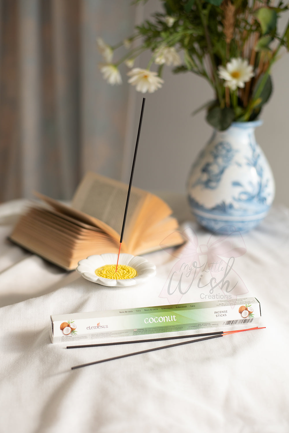 Immergiti nell'atmosfera esotica e avvolgente dell'incenso al Cocco della linea Elements. Un viaggio sensoriale che richiama spiagge tropicali e momenti di puro relax.