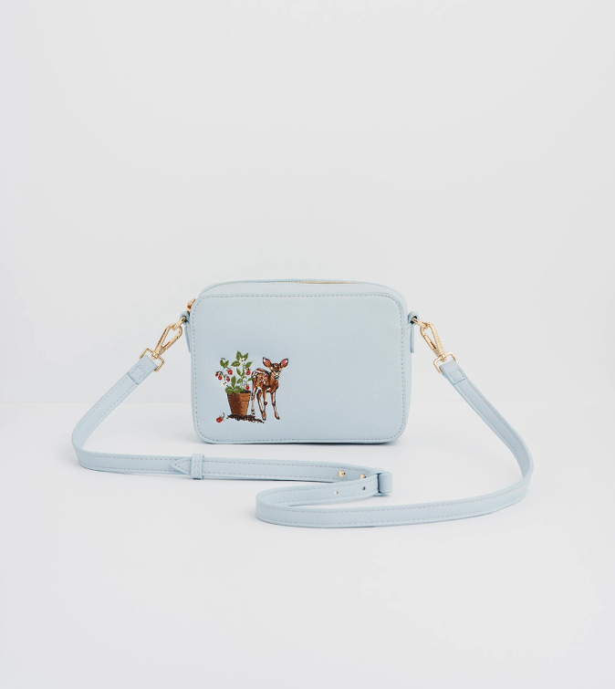 Porta con te i tuoi ricordi con l'elegante borsa a tracolla Charlotte Strawberry & Fawn Blue. 🍓🦌✨