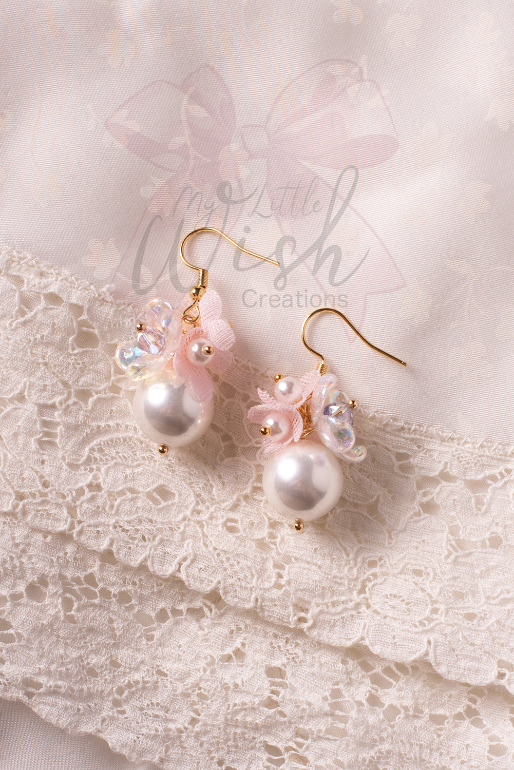 Romantisches und elegantes Paar Ohrringe mit Maxi-Acrylperle und kleinen Blumen in Rosatönen.