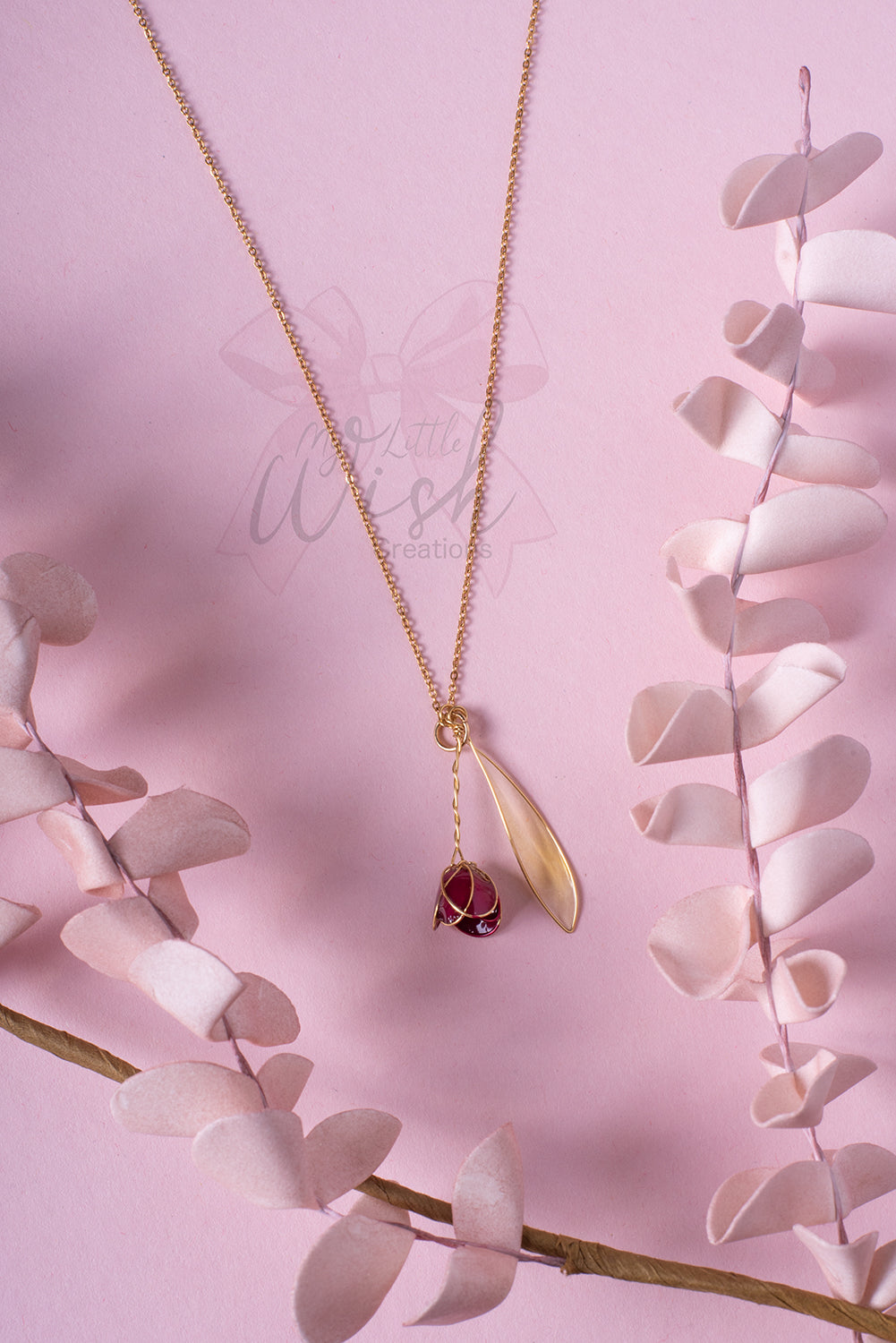 A simple yet meaningful piece. This necklace pays homage to the beauty of nature, featuring a delicate red tulip pendant, crafted and finished by hand with care and passion. Each flower is unique, with subtle variations that highlight its craftsmanship and exclusivity.